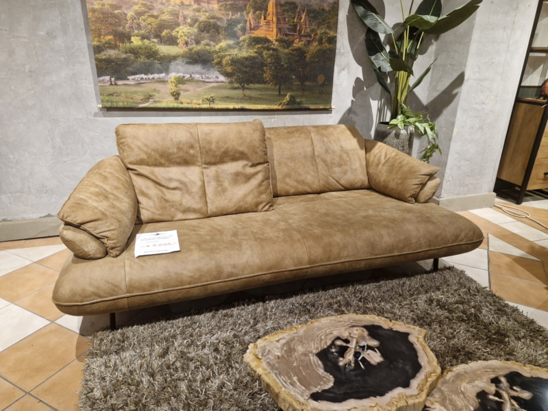 3 zits in leder naturel 242 cm (zitdiepte verstelbaar manueel)